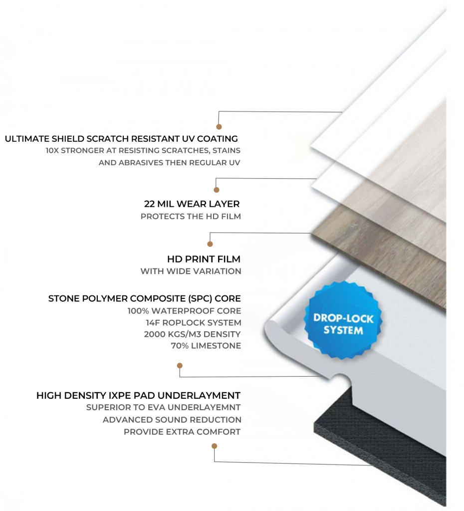 Step into style without stepping over budget. Our extensive collection of affordable vinyl flooring is in stock and ready to transform your space. Discover the perfect blend of high-end aesthetics and everyday practicality. It’s 100% waterproof, making it a stress-free solution for kitchens, bathrooms, and basements where spills and moisture are common. The durable, scratch-resistant top layer stands up to the demands of busy homes, protecting your floors from kids, pets, and high-traffic entryways.